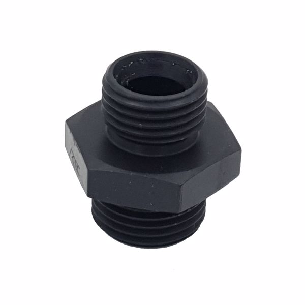 Metric aluminium adaptor - Metric (DIN) cone 60° with M16x1.5 male thread one side and M18x1.5 male thread the other.